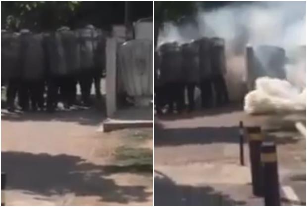 Potom se može videti kako specijalci stoje nepomično pred oblakom suzavca, a posle nekoliko sekundi su ipak morali da se pomere.