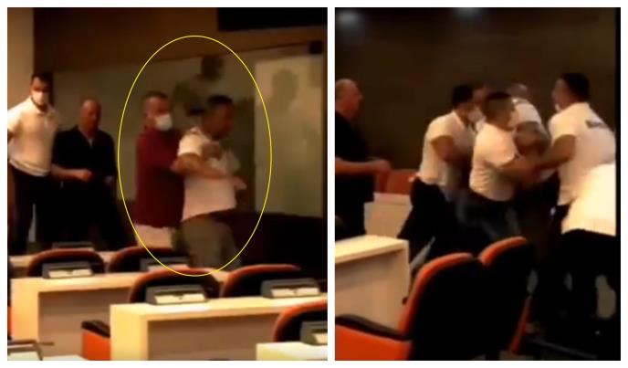 Takođe se čuje kako neko izdaje naređenje da odbornika iznesu iz sale.