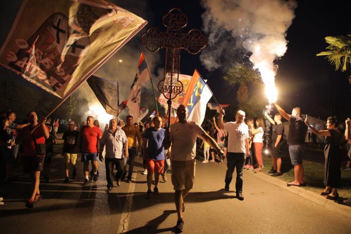 - Protesna kolona u kojoj su bile hiljade i hiljade ljudi, duga više od kilometra, koja je prošla ulicama Podgproice, oko 21 sat stigla je ponovo pred Hram Hristovog vaskrsenja. Narod se ne razilazi već još jednom šalje poruku jedinstva i upornosti u odbrani svojih svetinja.