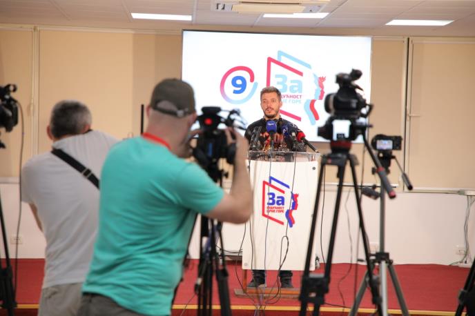 U izbornom štabu Koalicije za budućnost Crne Gore koji je u Srpskoj kući u Podgorici u ovom trenutku je oko 50 novinara domaćih i stranih medija.