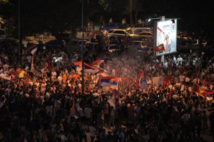 Više desetina hiljada ljudi slavilo je večeras u Podgorici pobedu na parlamentarnim izborima u Crnoj Gori.