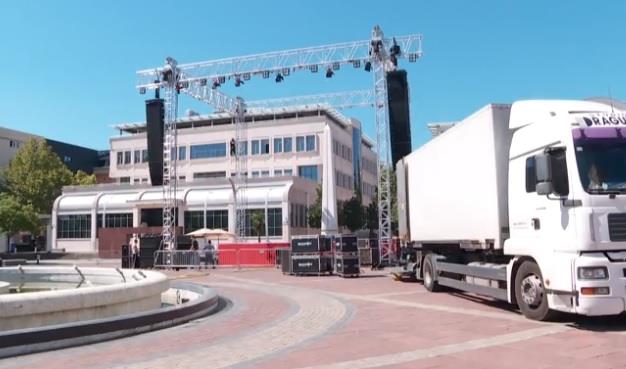 U Podgorici se može čuti da gradska vlast postavlja binu za večerašnji skup.