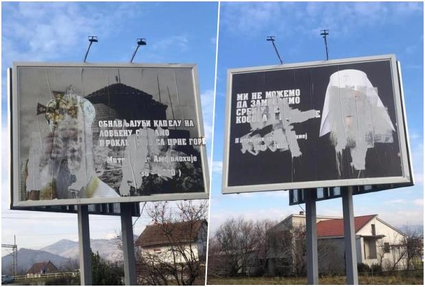 Poslanik Demokratskog fronta Milan Knežević žatražio je danas od crnogorske policije da u najkraćem roku otkrije ko je oskrnavio bilborde posvećene srpskom patrijarhu Irineju i mitropolitu crnogorsko-primorskom Amfilohiju i počinioce sankconiše.