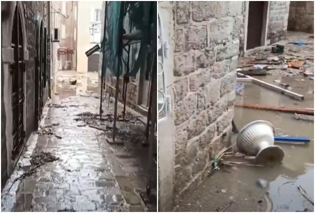 More je u ponedeljak uveče prodrlo u Stari grad u Budvi, a talas je praktično došao do hotela Mogren.