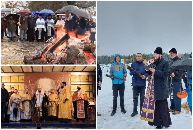 Sa druge strane, vernici i pristalice Crnogorske pravoslavne crkve naložili su badnjake na cetinjskom trgu.
