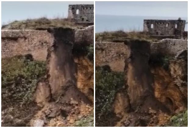 URUŠIO SE BEDEM NA STAROM GRADU U ULCINJU: Popustio zid usled jakih kiša, zemlja se stropoštala niz liticu! (FOTO)