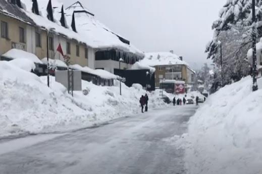 Ogromna količina snega i leda obrušila se sa krova zgrade u centru Žabljaka u Crnoj Gori, na ženu i dete, a zahvaljujući reakciji građana i policije, oni nisu zadobili povrede.