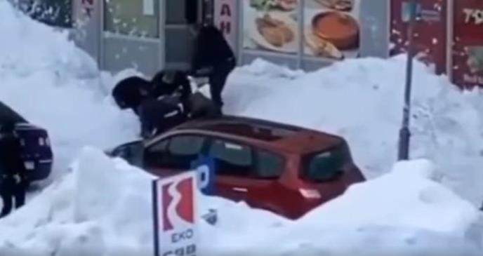 STRAŠAN PRIZOR SA ŽABLJAKA: Sneg pao sa zgrade i potpuno zatrpao majku i dete! Lopatama i golim rukama ih izvukli (VIDEO)