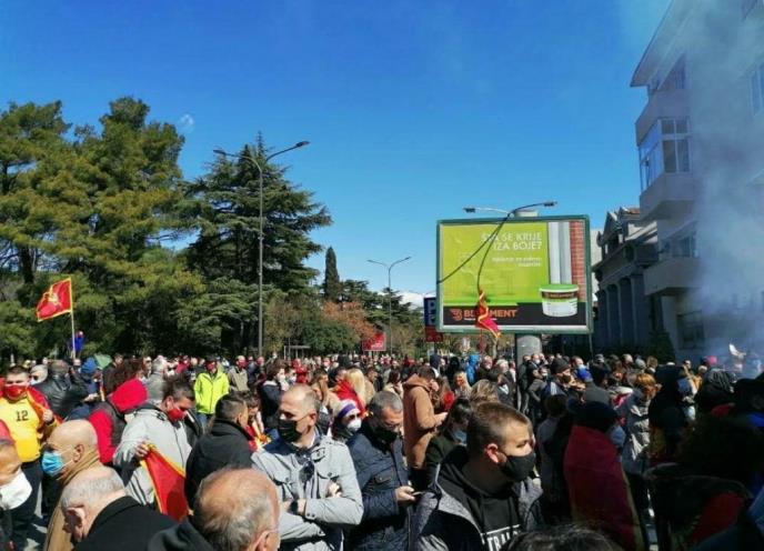 12.18 - Na protsetu u organizaciji Patriotsko-komitskog saveza, bliskom DPS Mila Ðukanovića, uobičajeno su bačene dimne bombe i zapaljene baklje, a skandiralo se protiv potpredsednika vlade Dritana Abazovića i njegovog građanskog pokreta URA. Okupljni su pevali “Imala je URA rašta, izdaja se ne prašta”, “Izađi Dritane, izađi mala”, “Petroviću, samo reci, letećemo kao meci!”, “Kralj Nikola na umoru, blagosilja Crnu Goru”…