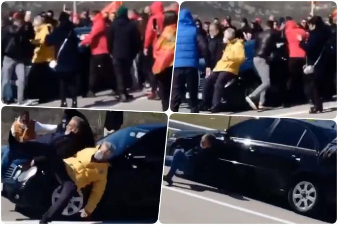 Grupa građana je pokušala da spriječi prolazak vozila Vlade Crne Gore, sjedanjem na haubu.