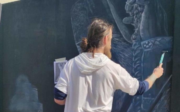 David Husić (31) umetnik iz Bara danas je ponovo oslikao mural sa likom blaženopočivšeg mitropolita crnogorsko-primorskog Amfilohija na zidu kancalarije Prave Crne Gore u Ulici Rista Lekića.