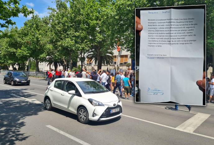 "Mi, slobodni građani okupljeni ispred Skupštine zbog najavljenog razrešenja ministra Vladimira Leposavića, želimo da poručimo javnosti u Crnoj Gori da smo ogorčeni odbijanjem premijera Zdravka Krivokapića da nam se obrati!