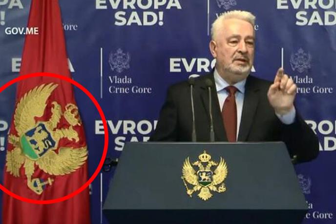 Tokom današnje press konferencije, iza premijera Zdravka Krivokapića nalazila se zastava Crne Gore koja očito nije bila u skladu sa onim što je propisano aktima o državnim simbolima.