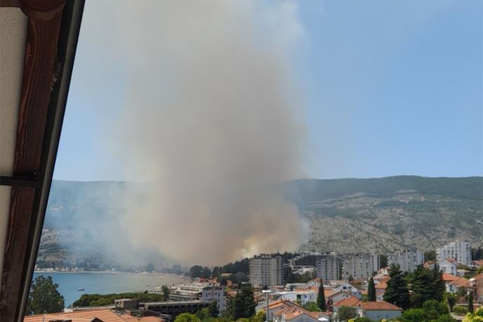 Dim se sve više širi dok vatrogasci pokušavaju da lokalizuju požar koji je nešto pre 11 sati izbio u naselju Žvinje iznad Igala.