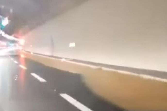 U petak veče je na društvenim mrežama objavljen snimak na kojem se vidi kako jednom od saobraćajnih traka auto-puta, vrednog milijardu evra, u tunelu teče bujica.
