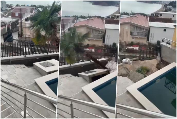 Danas je u Sutomoru došlo do obrušavanja dela jedne kuće i betonskog zida sa ogradom, a jeziv prizor je zabeležen kamerom.