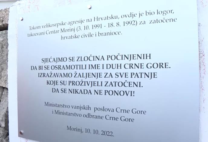 "Tokom velikosrpske agresije na Hrvatsku, ovde je bio logor, takozvani Centar Morinj, za zatočene hrvatske civile i branioce", navodi se na spomen ploči koja je otkrivena 10. oktobra.