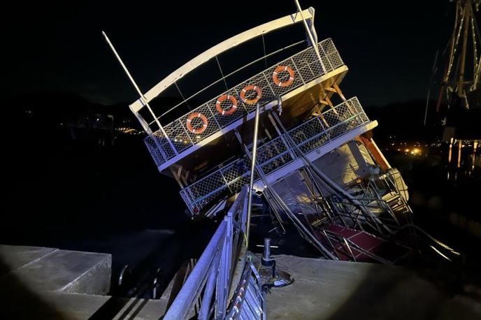 Drveni brod dugačak preko 20 metara nagnuo se na levi bok i, pod za sada još neutvrđenim okolnostima, potonuo u plićaku na mestu na kojem je bio vezan u tzv. četverovezu.