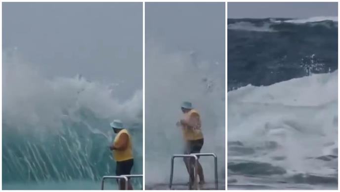 "Iako je situacija na moru danas mnogo složenija zbog pojačanog vetra i velikih talasa, kupači ne haju zbog istaknute crvene zastavice", navodi se u opisu ovog šokantnog snimka.