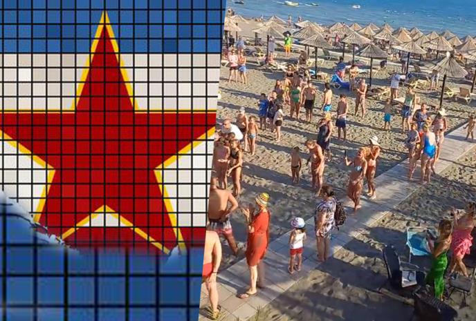 Nesvakidašnja scena zabeležena je na Velikoj plaži u Ulcinju kad je iz obližnjeg bara puštena himna nekadašnje SFRJ!