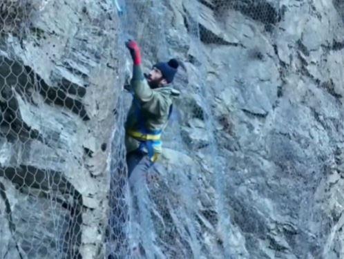 Sve se dešava u mestu Sokolovina u Crnoj Gori. Taj muškarac skida mrežu koja štiti da odroni ne padaju na put, a sve u sklopu rešavanja velikog problema na magistralnom putu Mojkovac – Đurđevića Tara. Naime, planirana je trajna sanacija i izgradnja galerije.