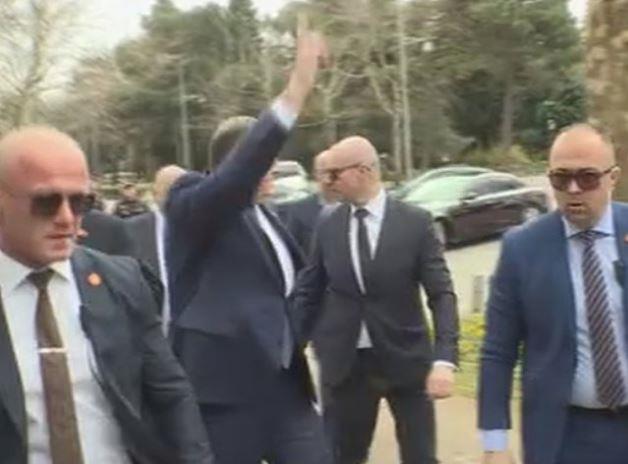 Dodik je prilikom ulaska u Skupštinu pozdravio okupljenu grupu građana koja protestuje zbog njegovog dolaska, tako što je podigao tri prsta.