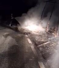 Kamion sa prikolicom izgoreo je jutros, između tri i četiri sata, u blizini Mioske, na magistralnom putu Kolašin - Podgorica, dok je F.P. (24), koji je upravljao vozilom nepovređen.