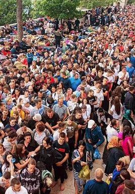 Ozarenih lica staro i mlado pristupaju ćivotu uzimajući blagoslov od iscelitelja.
