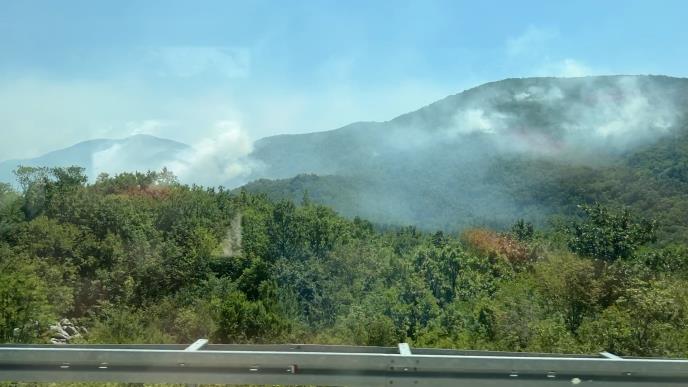 Iako se dim od požara u brdima iznad Cetinja i Budve širi čitavim tim predelom, nema opasnosti za ljude jer u blizini nema naseljenih stambenih objekata.