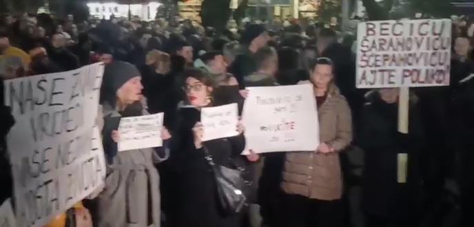 Građani u Podgorici nosili su transparente „Tuga, revolt, bijes“, „nema nazad“, „raspad sistema“, „opasnost za sve“, „Bečiću, Šaranoviću i Šćepanoviću ‘ajte polako“… Prisutni su uzvikivali „ruke su vam krvave“.