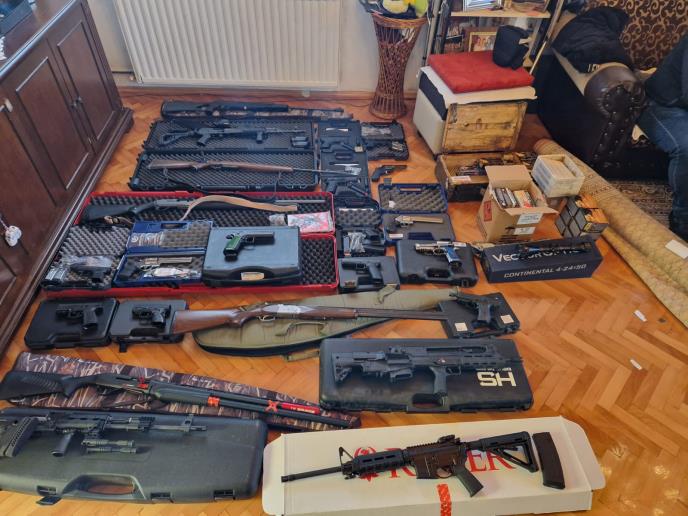 - Nakon hapšenja 15. februara 2025. godine, službenici Odeljenja bezbednosti Danilovgrad i specijalizovane Grupe za suzbijanje krijumčarenja oružja i eksplozivnih materija (SBPK) sproveli su dodatne istrage. Prema sudskom nalogu, juče je izvršen pretres njegove kuće u naselju Orašje – Grudice b.b, gde je pronađena količina ilegalnog naoružanja: 23 komada oružja, među kojima devet pušaka, 11 pištolja i tri revolvera. Uz to, zaplenjeno je i 2.417 metaka različitih kalibara, 35 komada municije za startni pištolj, okviri za oružje i optički nišani - potrvrđeno je u UP Crne Gore.