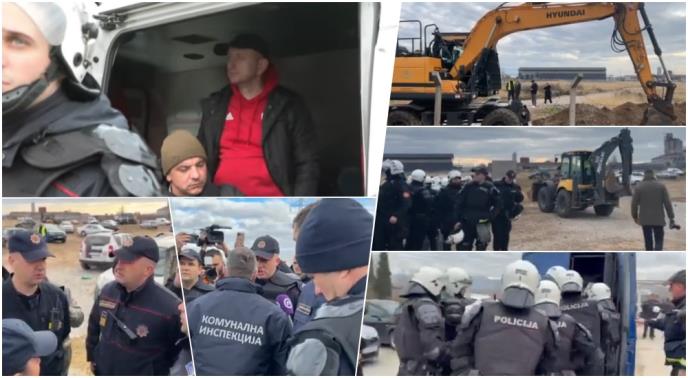 Policija je ranije izdala naređenje okupljenima da napuste lokaciju planiranu za gradnju postrojenja i uklone vozila.