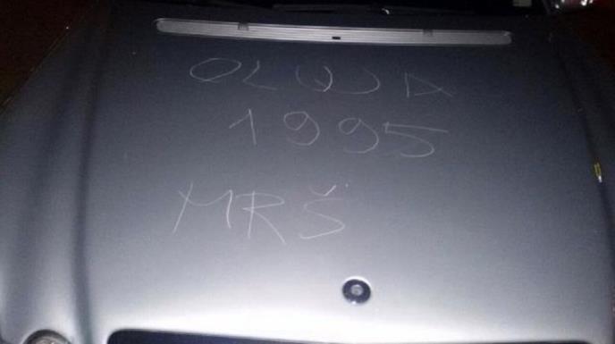 Na automobilu su urezane poruke "Oluja 1995 mrš" i "Niste dobrodošli".