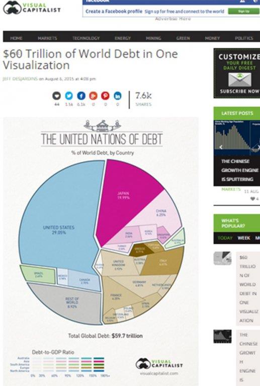U najnovijoj studiji ovaj portal je na grafičkoj "pogači" razlomio svetski dug na pojedine zemlje, prema podacima zvaničnih institucija (MMF) o zaduženosti, prenosi Poslovni dnevnik.