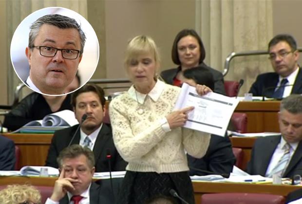 Poslanica SDP Ingrid Antičević Marinović prozvala je danas u Saboru hrvatskog mandatara Tihomira Oreškovića da je tokom prezentacije programa vlade korstio masonski simbol!