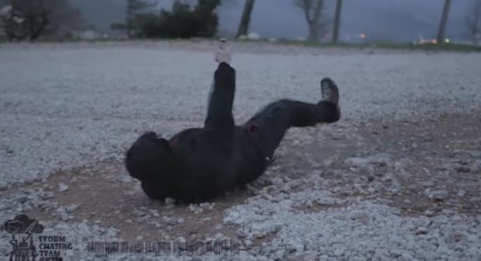 Na snimku se čuje kako mu kolege dovikuju "Lezi dole! Lezi dole!"