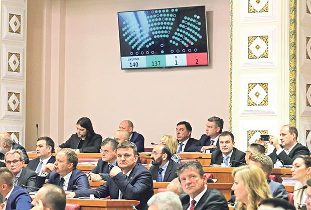 ZAGREB - Članovi hrvatskog Sabora sa 137 glasova „za“ i dva glasa „protiv“ doneli su juče odluku o raspuštanju parlamenta i odlasku na prevremene izbore, a ni poslednje zasedanje nije prošlo bez skandala - skupština je nazvana debilanom, a zastupnicima je poručeno da im je mesto u paklu.