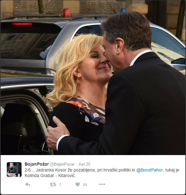 "Jadranka Kosor već je zaboravljena, tu je sad Kolinda Grabar Kitarović", napisao je slovenački novinar Bojan Požar na Tviteru.