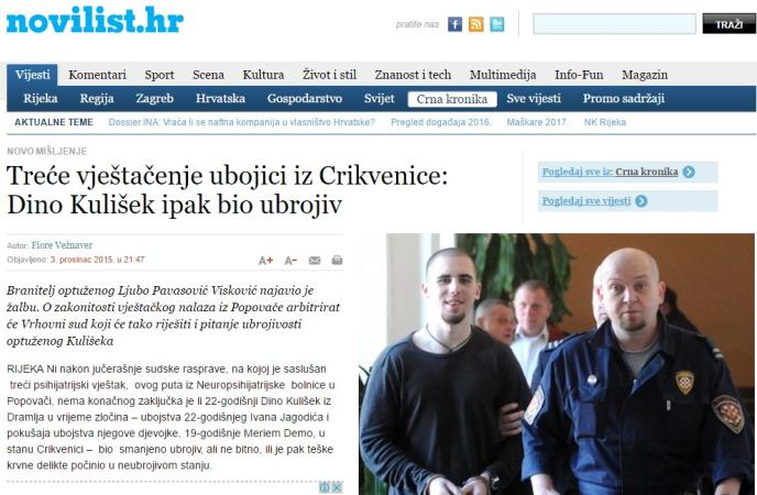 Kulišeku se sudi za ubistvo 13. jula 2014. u Crikvenici, kad je zbog 25 evra nožem nasmrt 40 puta izbo svog poznanika Ivana Jagodića i teško izranjavio njegovu devojku Meriem Demo.