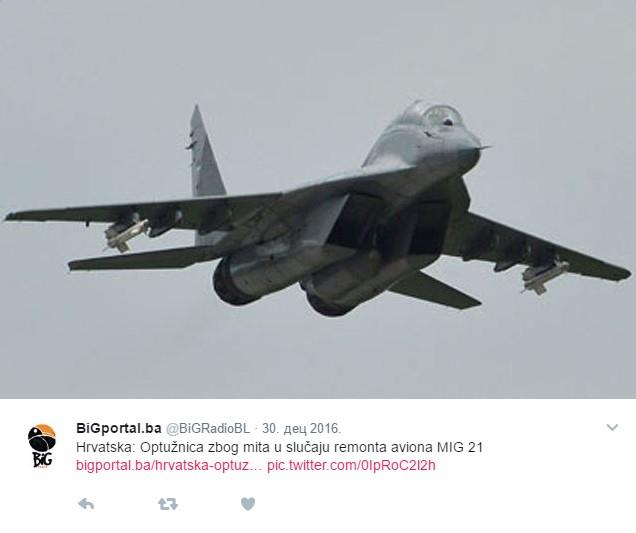 Motor MiG-a 21 Hrvatskog ratnog vazduhoplovstva iznenada se ugasio tokom leta u sredu, nezvanične su informacije, a tragedija je izbegnuta samo prisebnošću pilota koji je uspeo da ga ponovo upali i sigurno sleti u vojnu bazu na Plesu.