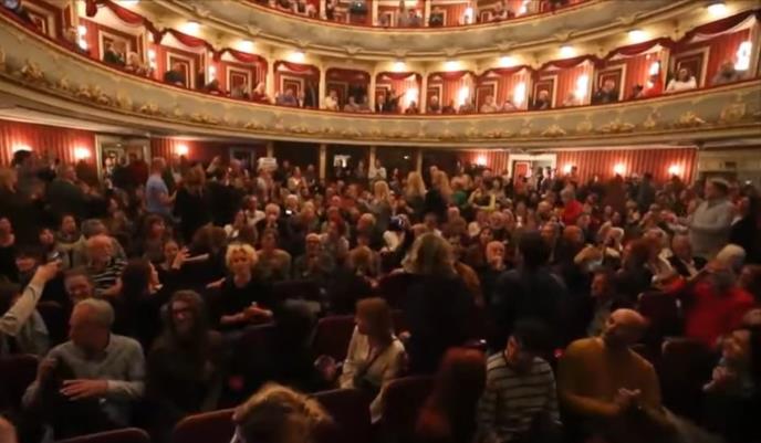 Nekolicina simpatizera ili članova HSP-a kupila je karte za predstavu i ušla u dvoranu da bi sabotirali izvođenje predstave i napravili incident. Tada je došlo do sponane, ali sjajne rekacije publike koja je u glas počela da peva pesmu "Kad bi svi ljudi na svetu" Arsena Dedića iz davne 1967. godine i tako utišala protestante.