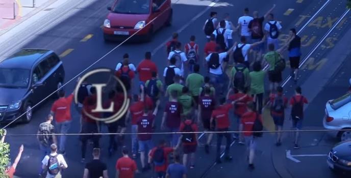 Oko 50 završenih srednjoškolaca prošla je Savskom ulicom u pravcu Trga bana Jelačića, a ustaški pozdrav su uzvikivali skoro sve vreme, preneo je hrvatski portal "Lupiga".