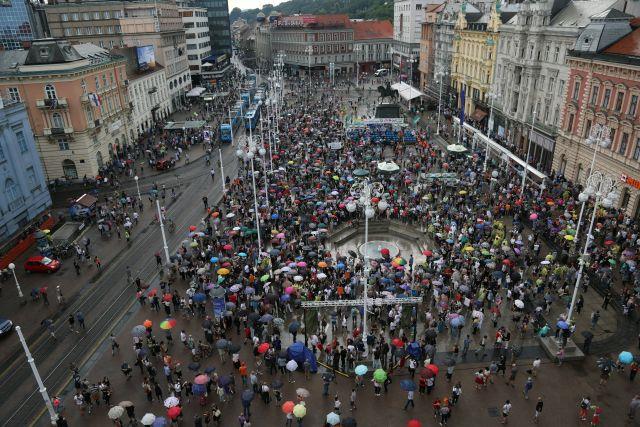 Učesnici protesta u Zagrebu okupili su se na Trgu bana Jelačića, odakle su