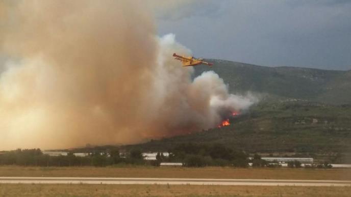 Hrvatski mediji su ranije objavili da je iznad Trogira izbio veliki požar koji je zahvatio makiju i nisko rastinje, a čije gašenje ometa jak vetar.
