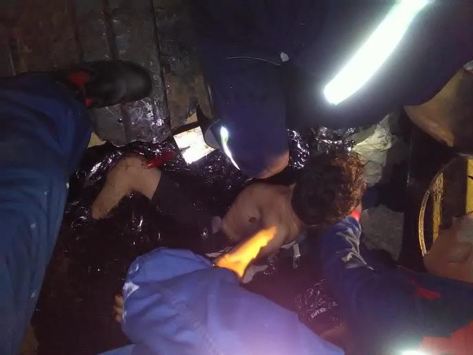 "Tehnički zahtevna i vrlo, vrlo teška i psihički opterećena intervencija koja je trajala 11 sati, od čega je za samo oslobađanje osobe iz bitumena vatrogascima trebalo 8:35 sati. Migrant svestan i živ ujutro odvezen hitnom u bolnicu", objavili su vatrogasci.
