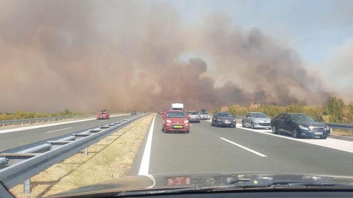 Vatra se zbog jakog vetra brzo proširila i ugrožava kuće i saobraćaj na magistrali između Biograda i Zadra.