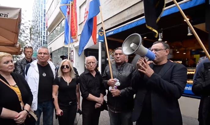 Skup pod nazivom "Za 'Za dom spremni' spremni", održan je ispred prostorija Srpskog narodnog veća u centru Zagreba, a članovi A-HSP zaopretili su premijeru Andreja Plenkovića u slučaju da skine spomen ploču hrvatskim veteranima u Jasenovcu, na kojoj se nalazi taj ustaški pozdrav.