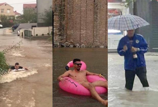 Dok većina stanovnika Zadra strepi od posledica razorne poplave, neki od njih odlučili su dići ruke od borbe sa vodenom stihijom, i sve okrenuti na šalu.
