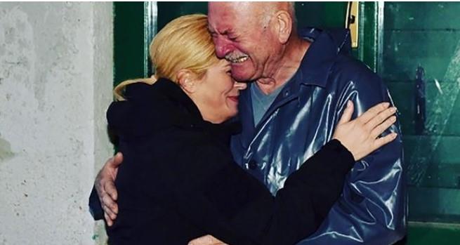Grabar-Kitarović objavila je fotografiju na kojoj grli i valjda teši starijeg čoveka koji plače, verovatno zbog štete koju je Zadru nanijela velika poplava.