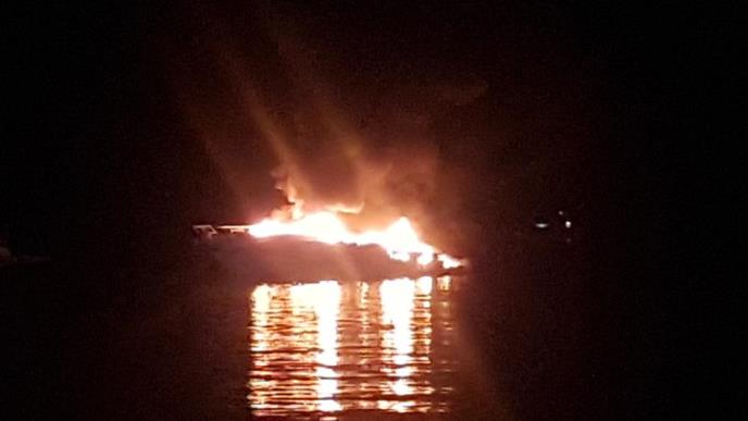 Luksuzna jahta planula je juče kasno uveče nedaleko od Primoštena. Dojava o zapaljenom brodu, privezanom za bovu, stigla je oko 22.50 sati.